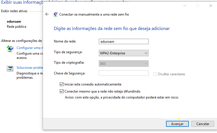 Clique em "Alterar configurações de conexão"