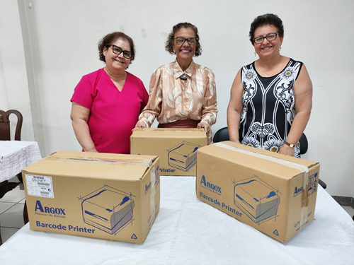 A enfermeira Danielli e a farmacêutica Ana Paula, acompanharam a entrega dos equipamentos. Vários colaboradores do Hospital da Criança estiveram presentes na entrega das impressoras, entre eles as médicas Cláudia Macedo e Márcia Mundim, responsáveis pelo hospital.