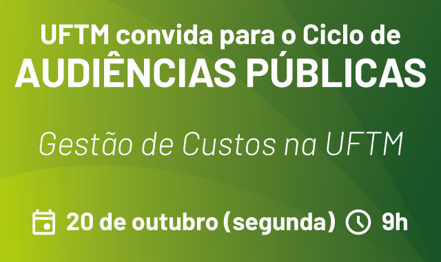 Na próxima segunda-feira (20) acontecerá uma Audiência Pública sobre a Gestão de Custos na Universidade Federal do Triângulo Mineiro (UFTM). O encontro é realizado pela...