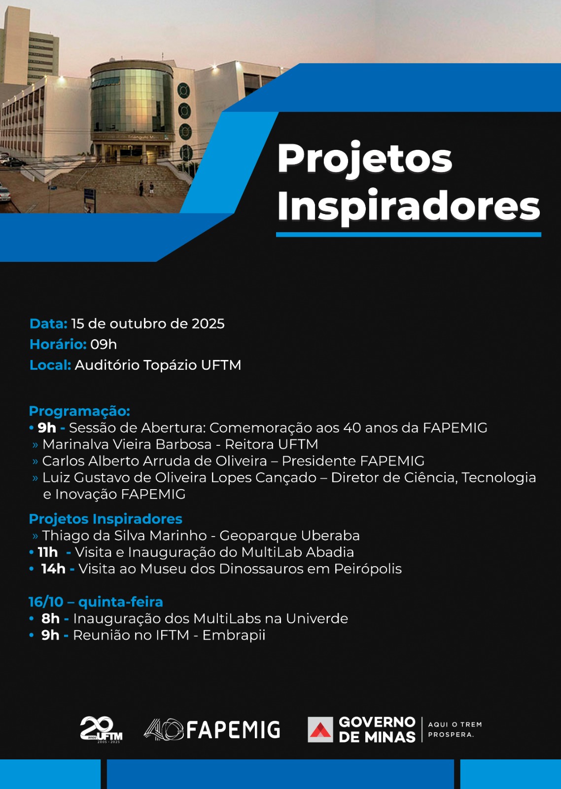 O evento será realizado no Auditório Topázio da UFTM a partir das 9h O evento será realizado no Auditório Topázio da UFTM a partir das 9h. A abertura contará com a presença da...