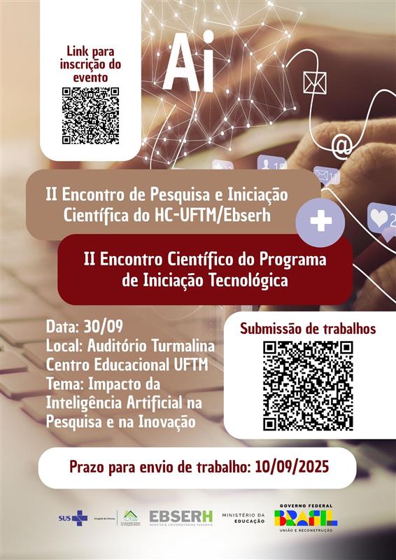 Dia 30 de setembro acontecerá, no Auditório Turmalina, o II Encontro de Pesquisa e Iniciação Científica do HC-UFTM/Ebserh e o II Encontro Científico do Programa de...
