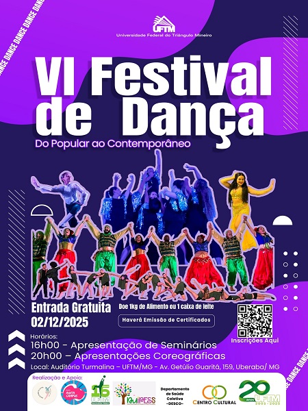 A Universidade Federal do Triângulo Mineiro (UFTM) promove no dia 2 de dezembro, no Auditório Turmalina, a sexta edição do Festival de Dança da UFTM: Do Popular ao Contemporâneo....