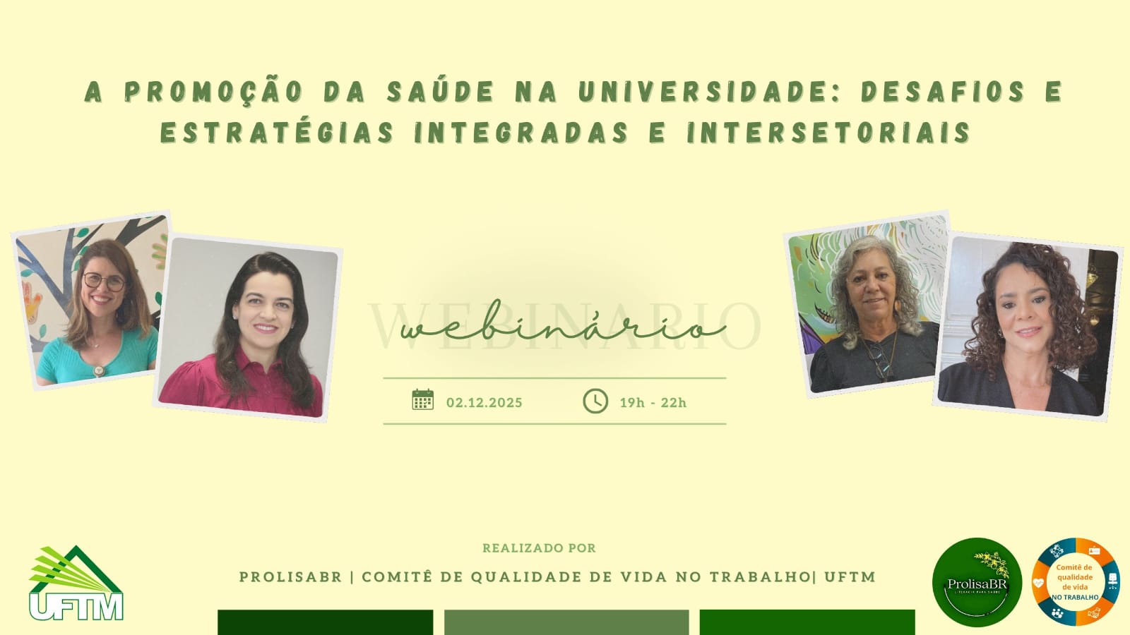 Dia 2 de dezembro, às 19h, será realizado o Webinário Promoção da Saúde na universidade: desafios e estratégias integradas e intersetoriais. O evento acontecerá no...